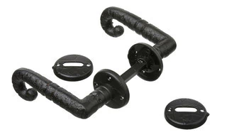 MANIJA DOBLE BALANCÍN TODO CONSTRUIDO ARTESANALMENTE EN HIERRO FORJADO. ES APTO PARA PUERTAS DE INTERIOR Y EXTERIOR TERMINACIÓN EN COLOR NEGRO INCLUYE: *2 BOCALLAVES *2 ROSETAS