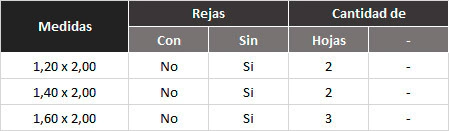Marco de acero plegado Nº19(espesor 1.10 mm) Hoja compuesta por caño de acero estructural 30 x 70 mm y lamina de acero estampada en una sola pieza con molduras horizontales Postigo en caño de acero estructural 15 x 20 mm Reja en hierro macizo redondo de 12 mm con planchuela de acero de 7/8 x 1/8 Cerraduras de seguridad (doble paleta) Bisagra de acero tipo munición Aldaba de acero zincada Terminación en antioxido al cromato de zinc.